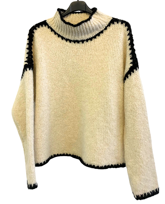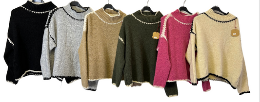 Soft Knitted Italian High Neck Jumper with Blanket Stitch Edging