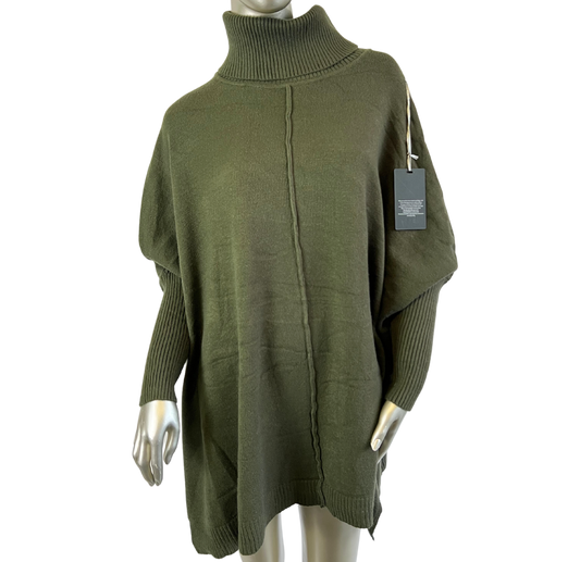 Oversized Knitted Cowl Neck Jumper with Front Seam Detail in Khaki
