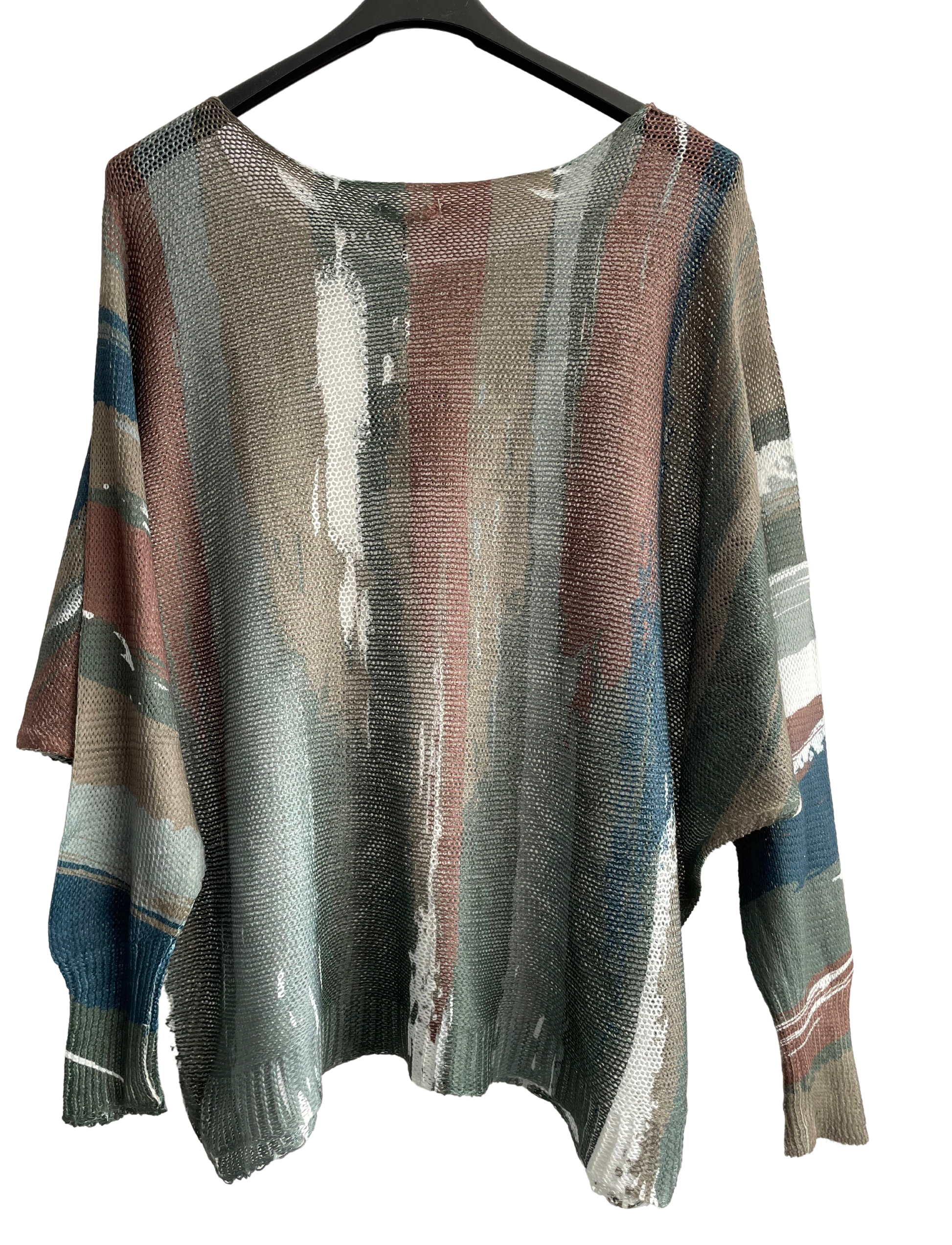 Brand New Women's Foil Design Paint Splash Fine Knit Batwing Autumn Jumper by Adorn Outfit