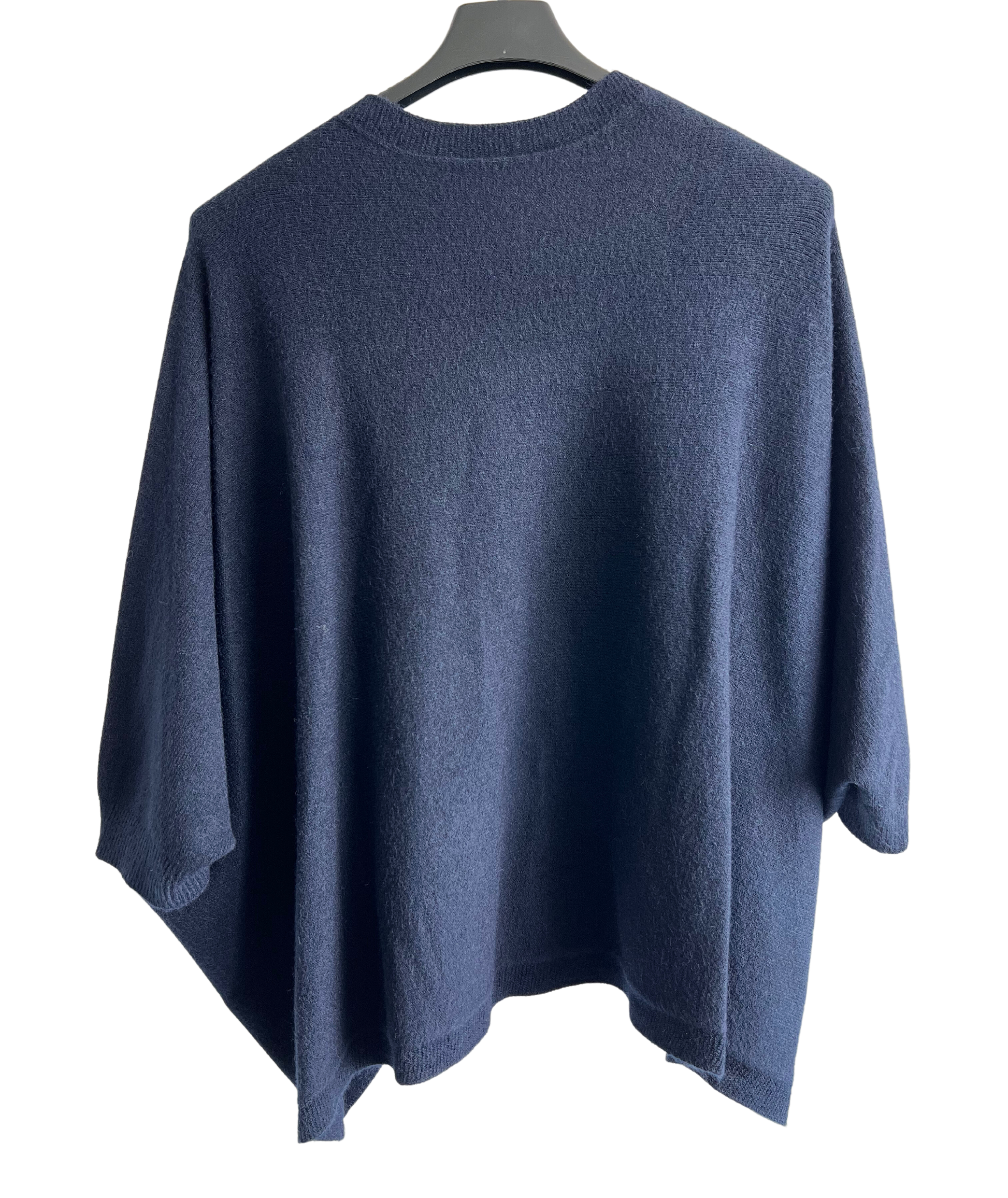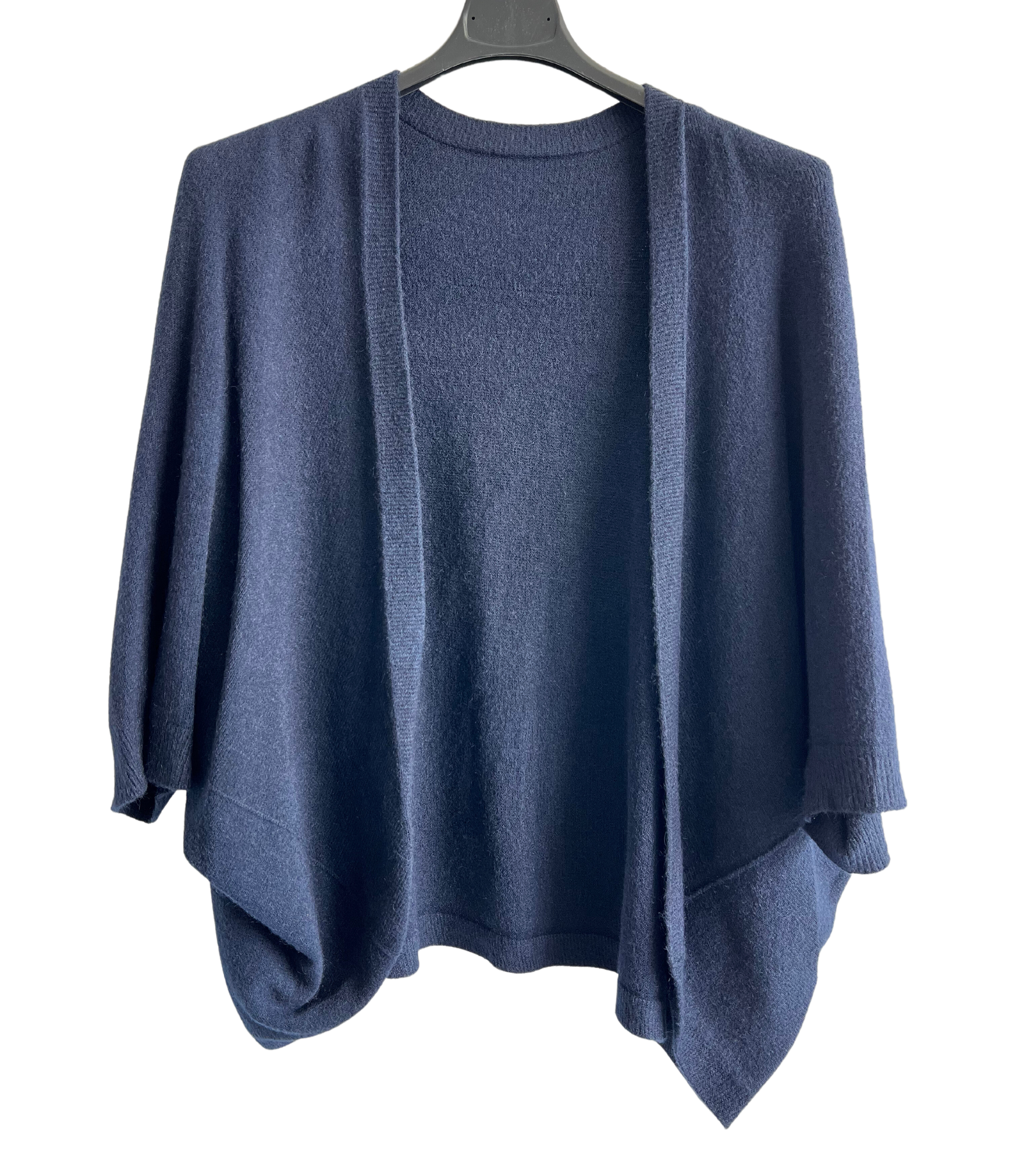 Lagenlook Soft Knit Open Front Short Cardigan in Navy