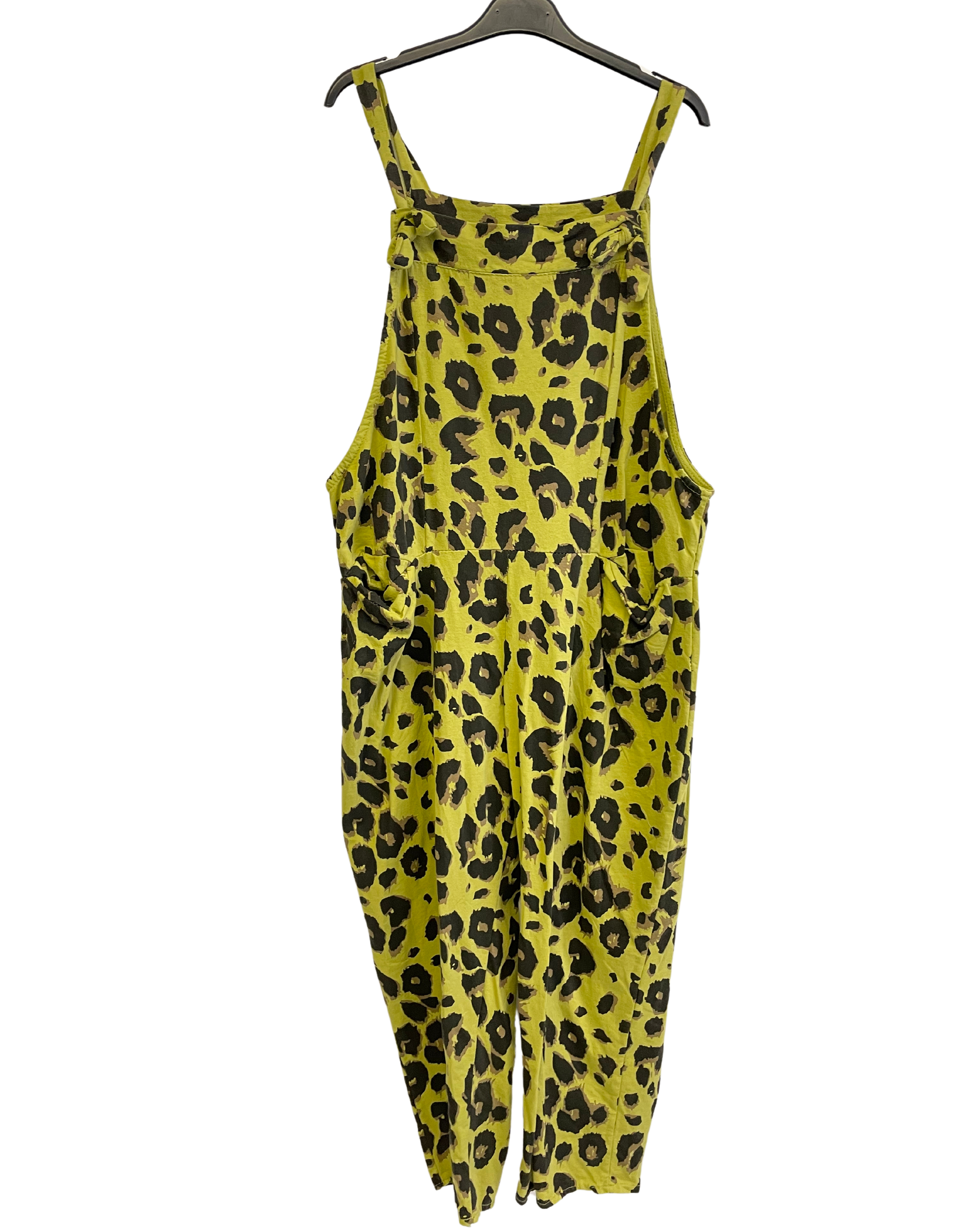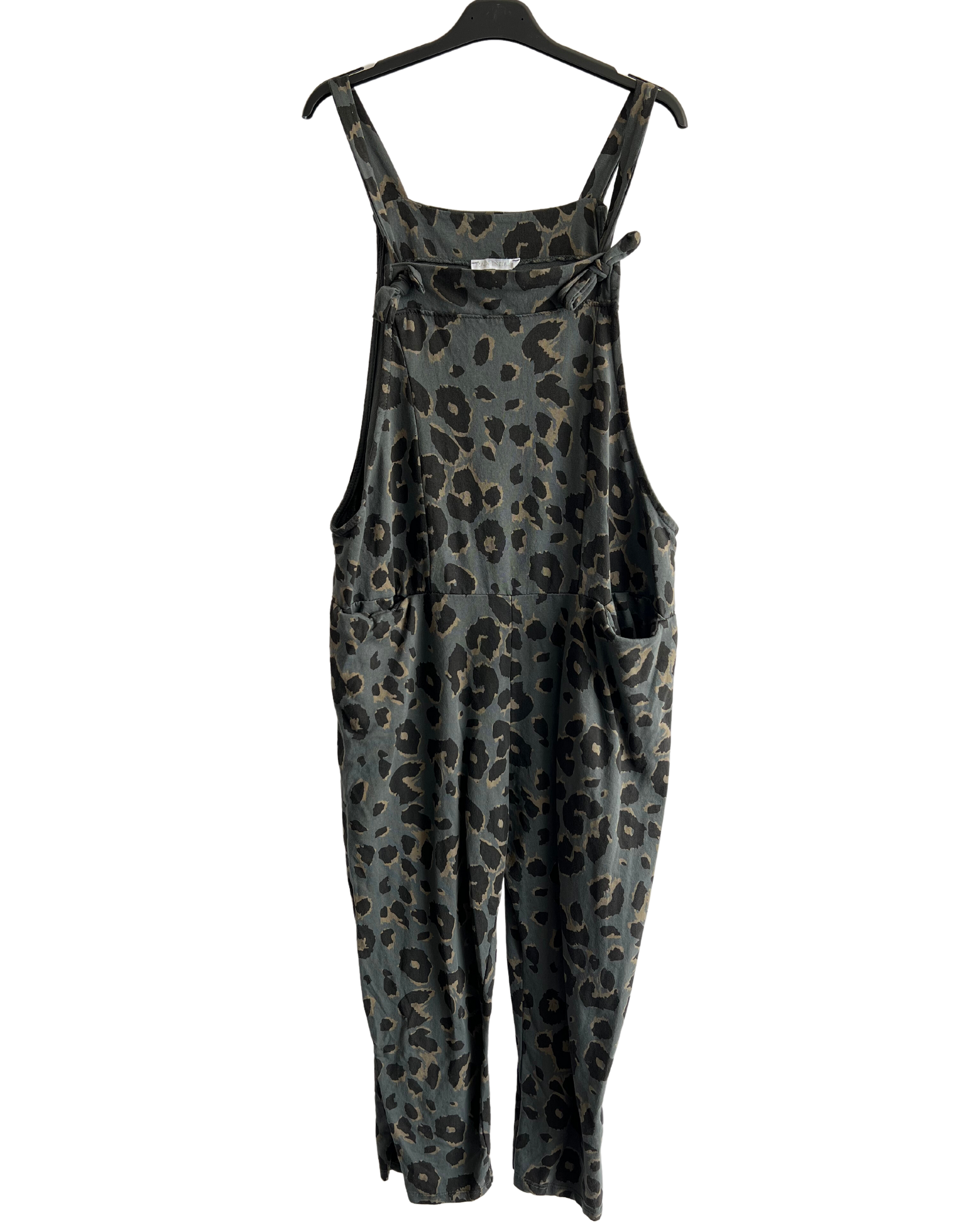 Brand New Womens Lagenlook 2 Pocket Animal Leopard Print Cotton Summer Dungarees