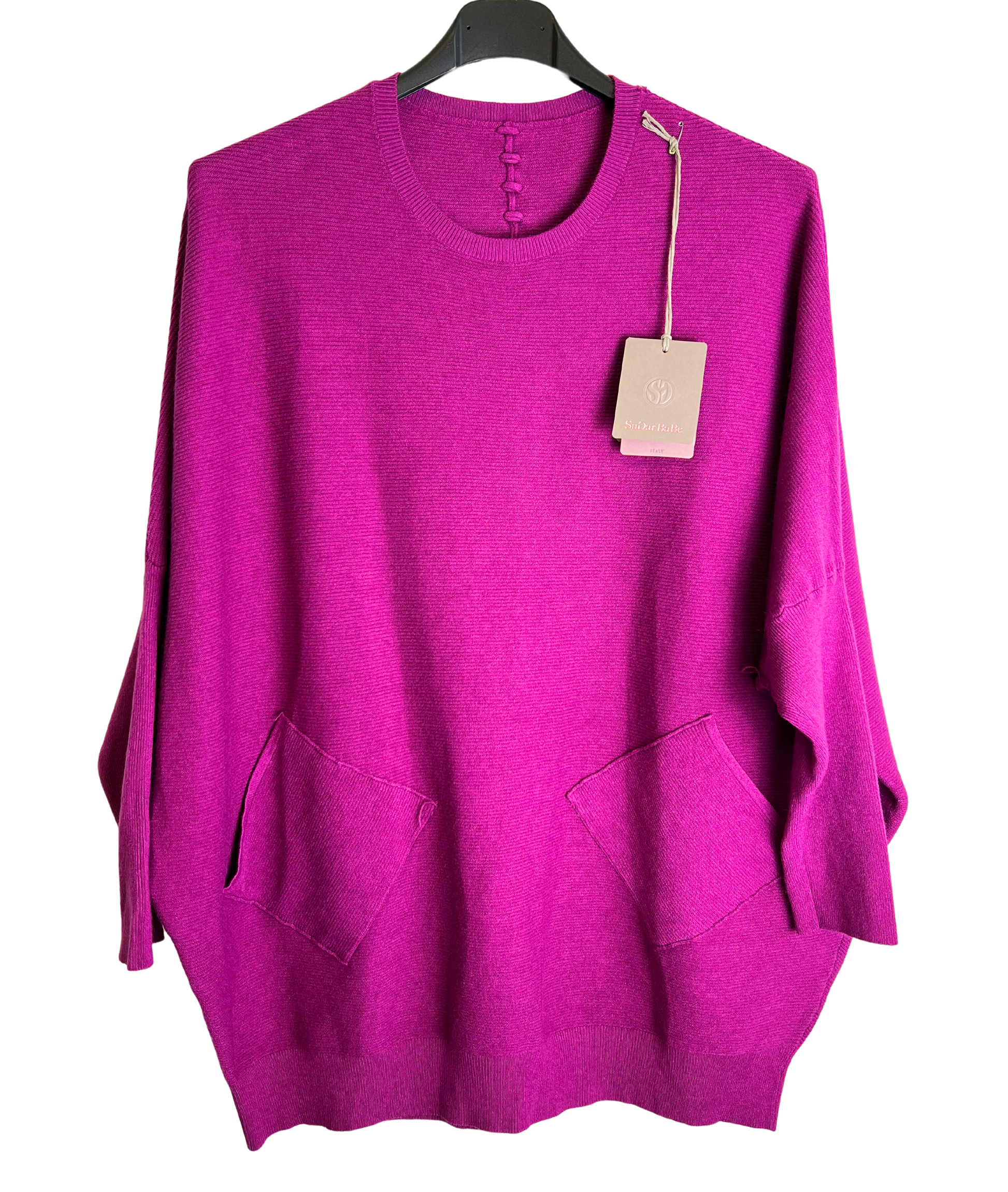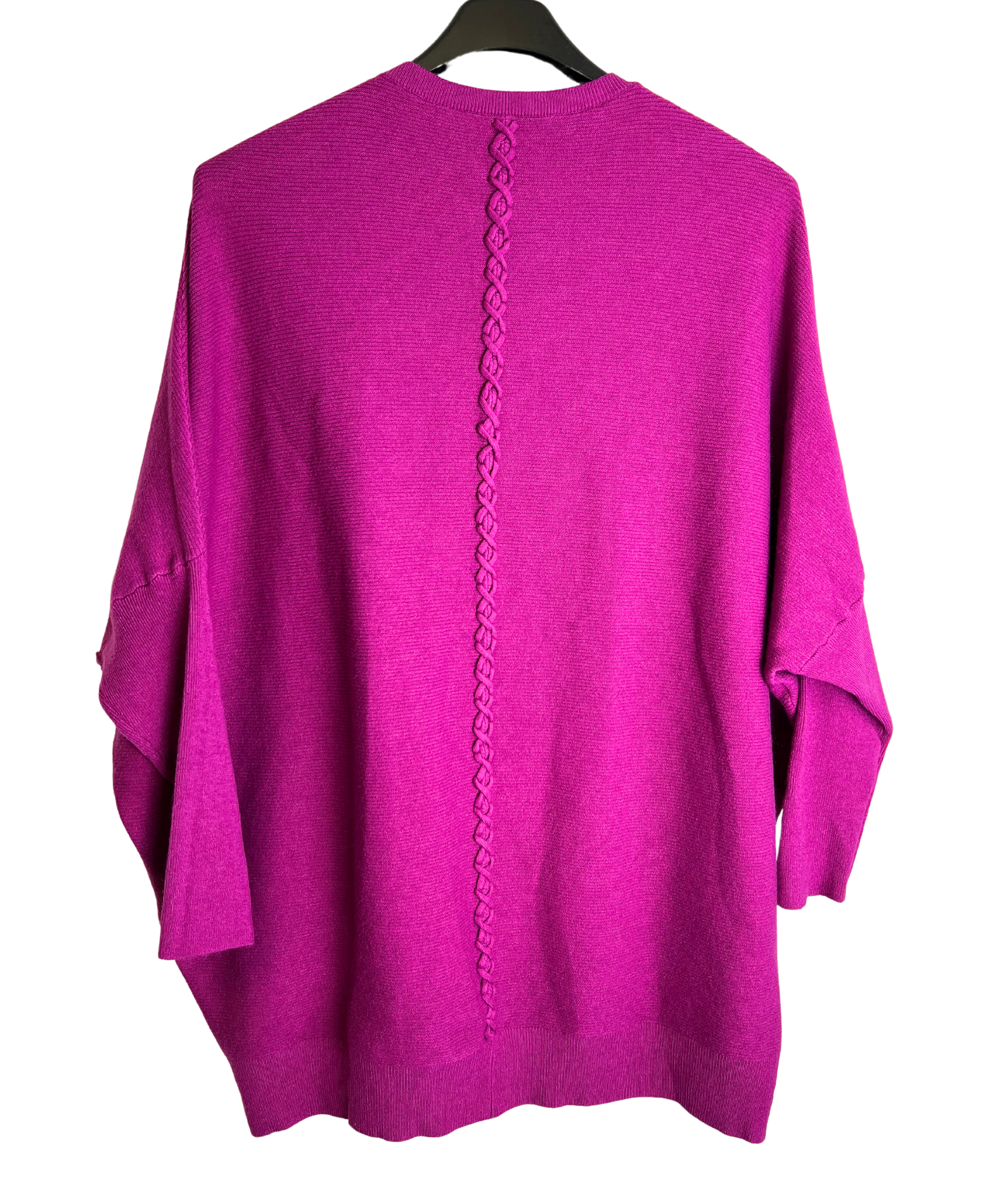 Lagenlook Italian Plait Back Design 2 Pocket Jumper in Magenta